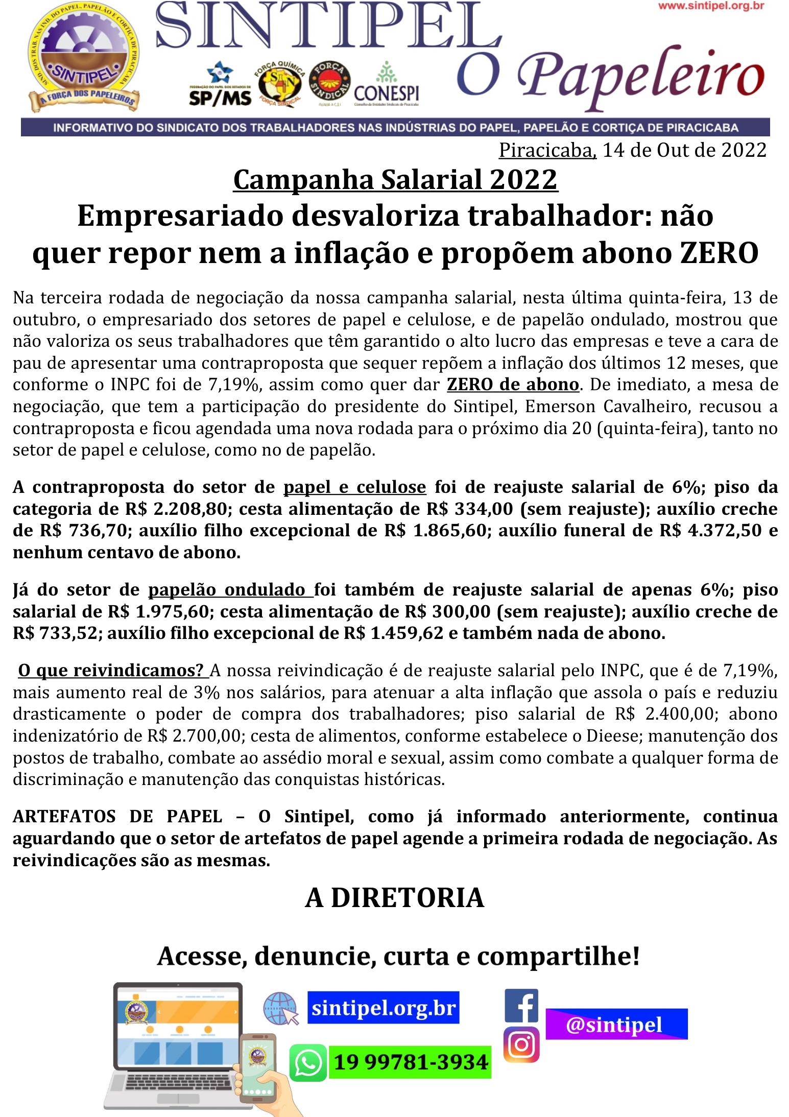Campanha Salarial Alteriores 2021 2020, 2019, 2018, 2017, 2016, 2015