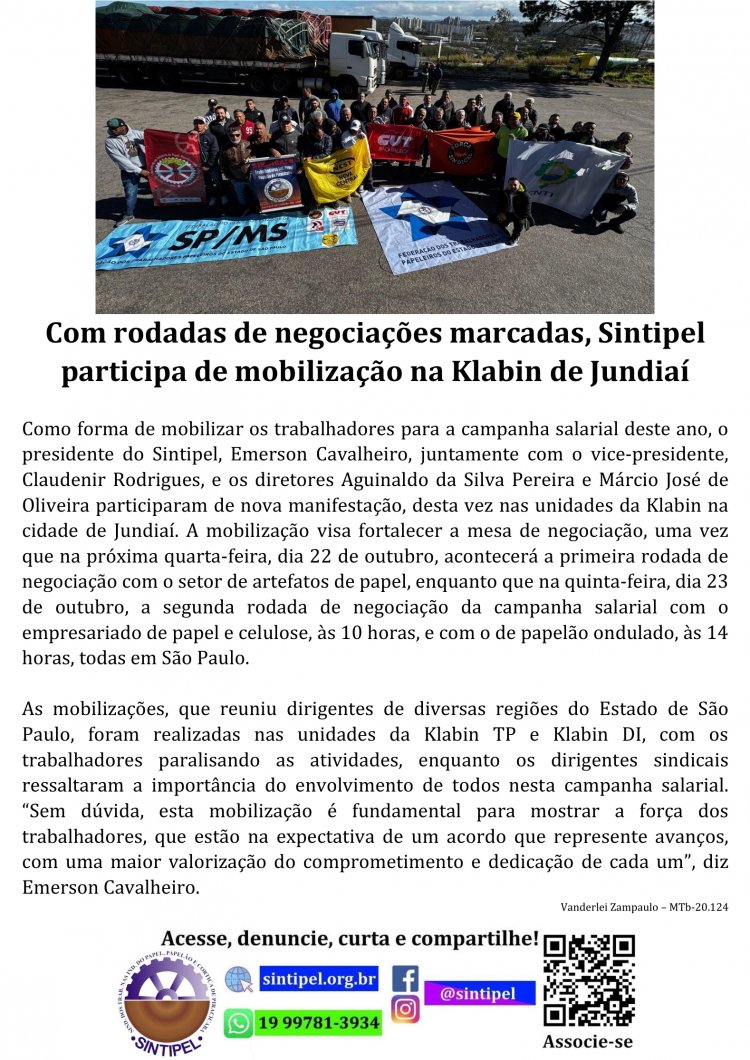 Com rodadas de negociações marcadas, Sintipel participa de mobilização na Klabin de Jundiaí