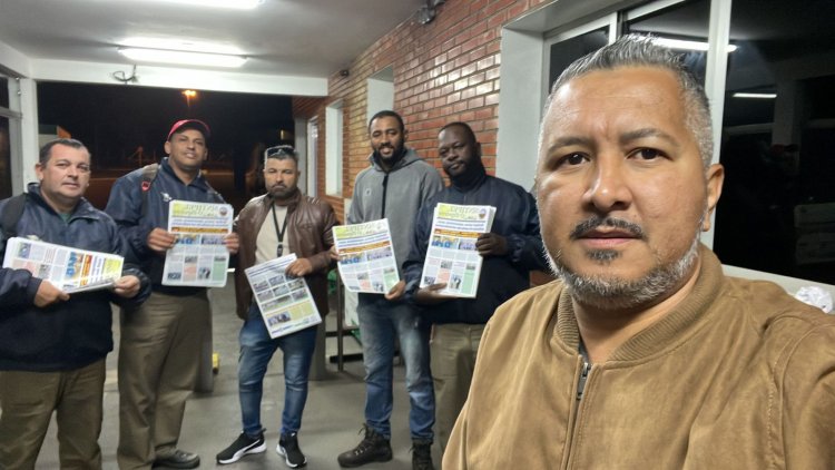 Diretores do Sintipel entregam o Jornal anunciando a assembleia da campanha salarial