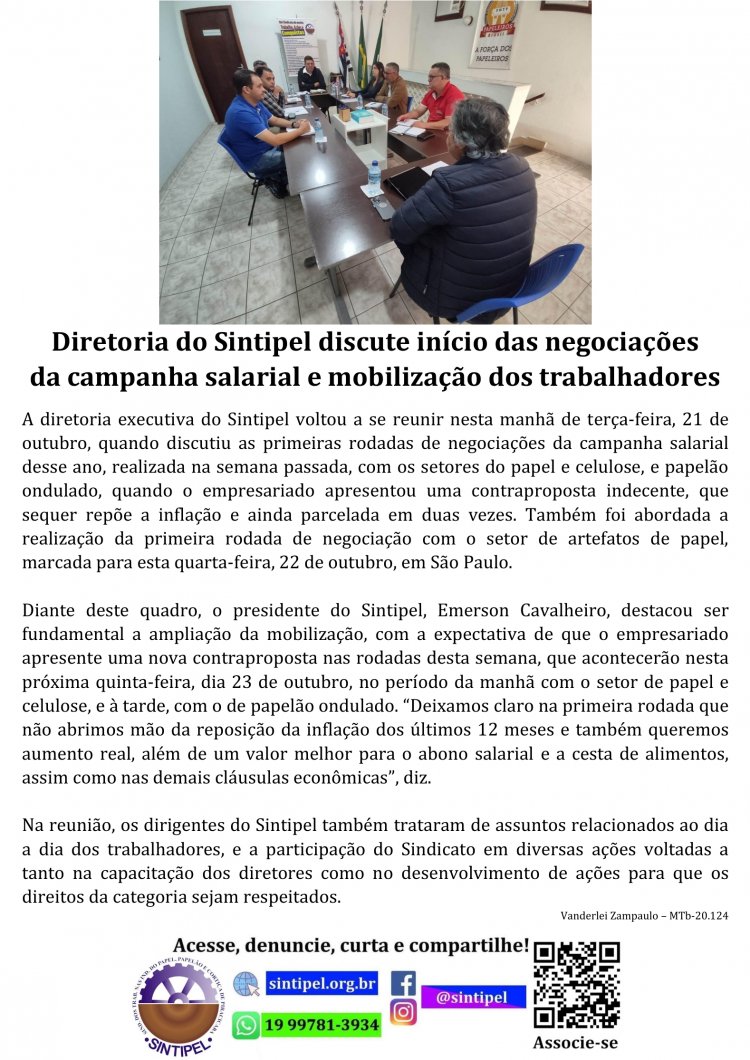 Diretoria do Sintipel discute início das negociações da campanha salarial e mobilização dos trabalhadores