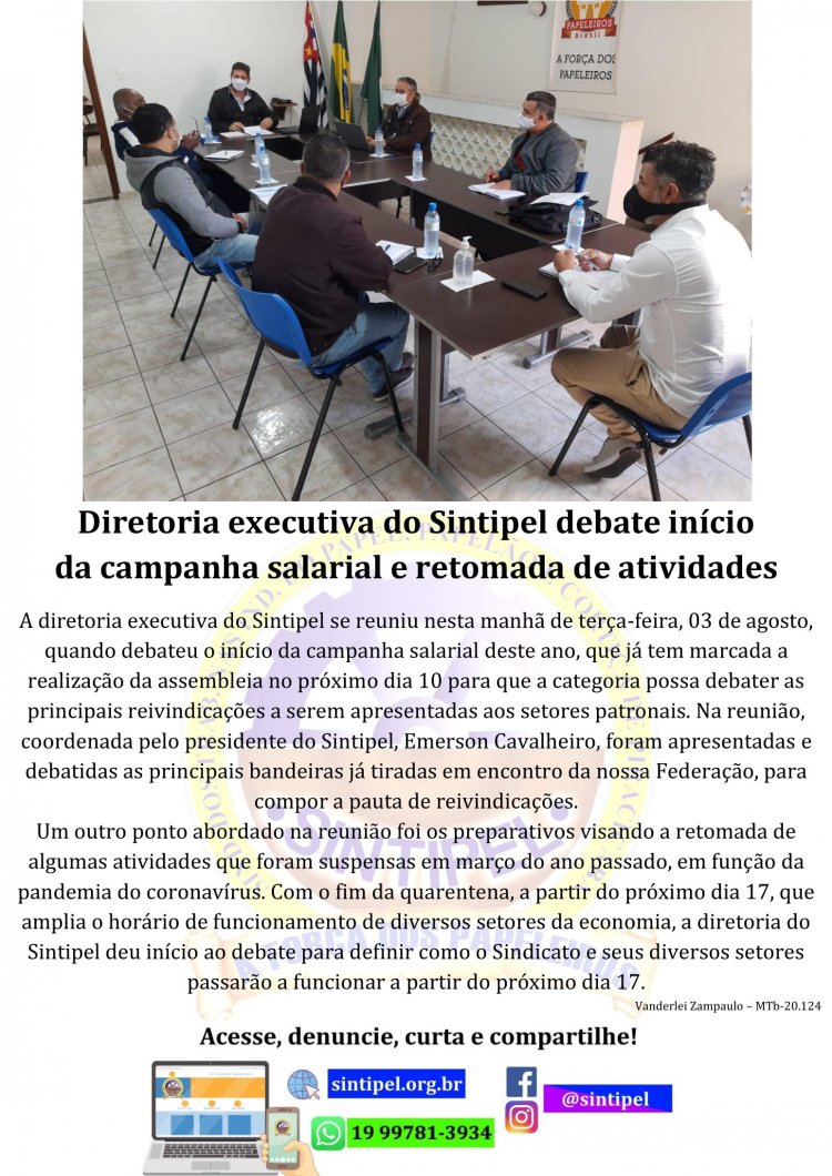 Diretoria executiva do Sintipel debate início da campanha salarial e retomada de atividades