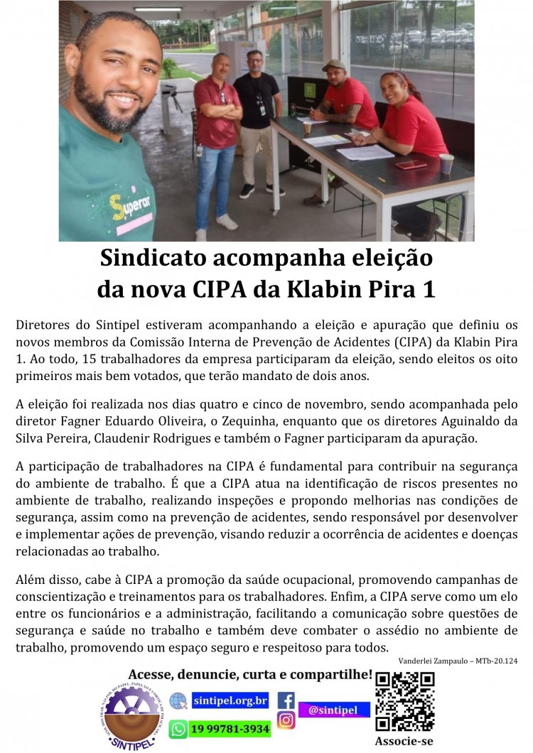 Sindicato acompanha eleição da nova CIPA da Klabin Pira 1