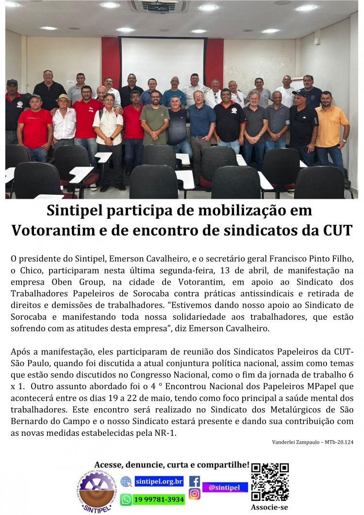 Sintipel participa de mobilização em Votorantim e de encontro de sindicatos da CUT